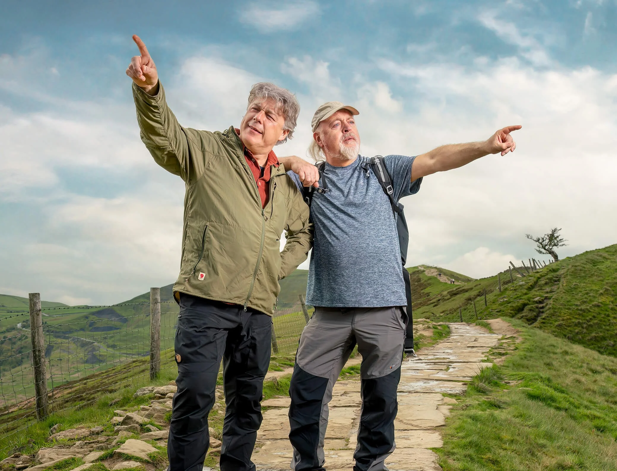 Portraits of Bill Bailey and Alan Davies on location in the Peak District for Bill’s Channel 4 show, Perfect pub walks. The walking shots were taken on Mam Tor and the pub shots were at the Blind Bull in Little Hucklow.